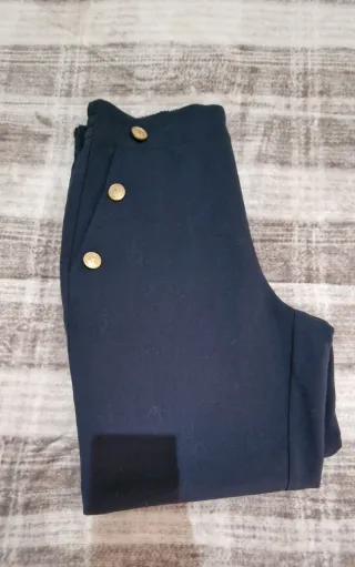 Pantalón de vestir de la marca Zara en color azul marino. Destaca por sus detalles de botones dorados en la parte delantera. - Diseño elegante. - Cierre con botones.