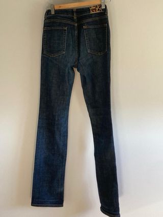 Pantalón vaquero de corte moderno con un acabado desgastado. - Talla 42. - Modelo Skinny Fit. - Prácticamente sin uso. - Diseño con rotos y detalles desgastados. - Tiro medio. - Cierre con cremallera y botón.