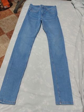 Pantalón vaquero pitillo de Zara en color azul. Un básico para tu armario. - Composicion Algodon +3%elastano ( algo elastico) - Corte pitillo. - Talle bajo - Tejido denim. - Cierre de botón y cremallera. Talla bastante pequeño, aunk pone talla 40 , equivale a una 36/38