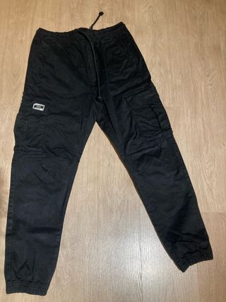 Pantalón de estilo cargo en color negro. - Cintura con cordón ajustable. - Bolsillos laterales. - Puños elásticos en los tobillos.