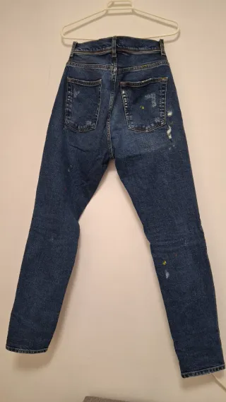 Pantalones vaqueros de corte ajustado con un diseño moderno y desgastado. - Detalle de rotos y salpicaduras de pintura. - Cintura alta. - Cierre de botón y cremallera.