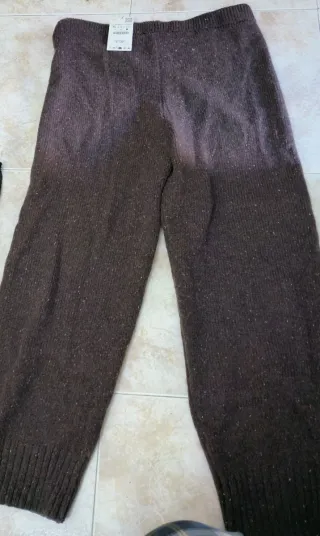 Pantalón de efecto piel en color marrón. En la etiqueta pone XS pero tallan grande. Corresponden a una talla. S garantizado. Están en perfecto estado, usados un par de veces. Se entregan límpios e impoluto. Tienen cremalleras abajo y se abrochan como unos vaqueros. Color marrón pegan con todo, super precio. Tengo otros nuevos de color clarito en mi armario. Más cosas bonitas en mi armario. - Diseño de tiro alto. - Piernas acampanadas. - Aberturas en los bajos.