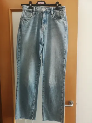 Pantalón vaquero de corte ancho y estilo desgastado. - Cintura alta. - Pierna ancha. - Bajo deshilachado. En perfecto estado. Usado solo un par de veces.