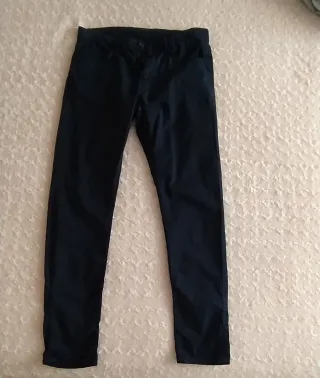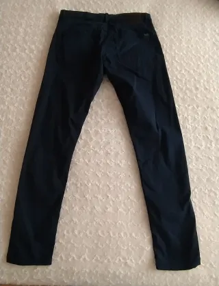 Pantalónpara hombre en tono azul marino. - Corte recto. - Bolsillos traseros. Está en perfecto estado. Un solo uso. Se quedó pequeño. Medidas en las fotos. El tono en las fotos parece más claro, pero es azul marino.
