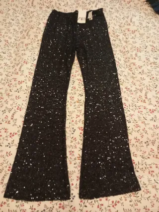 Pantalones Zara lentejuelas negros nuevos