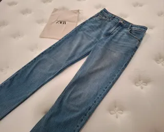 Pantalón vaquero de Zara en tono azul claro. Un básico para tu armario. Talla 38 - Corte moderno. - Tejido denim. - Cierre de cremallera y botón.