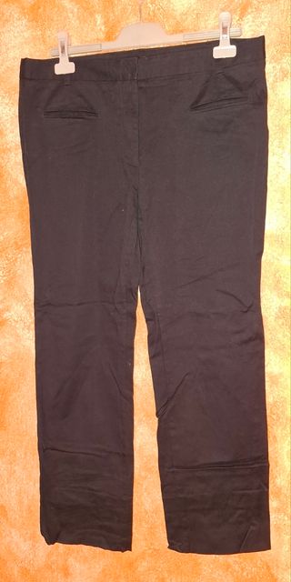 De tela, clásico. Con bolsillos delanteros. Talla 36, las medidas son: - Cintura: 36 cm - Cadera: 46 cm - Tiro: 25 cm - Largo: 95 cm