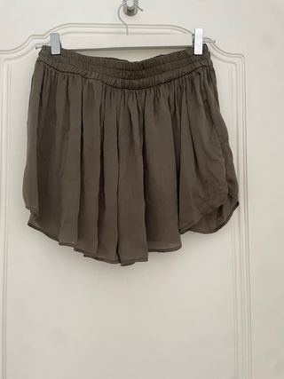 Pantalones cortos de Zara con cintura elástica y bolsillos laterales. El diseño fluido y el color verde oliva los hacen una prenda versátil. - Cintura elástica fruncida. - Bolsillos funcionales a los lados. - Tejido ligero y con caída.