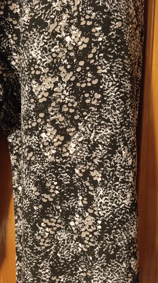 Elegante traje de chaqueta de Zara. Un diseño moderno y sofisticado. - Tejido texturizado en blanco y negro. - Cuello alto. - Cinturón negro para anudar.