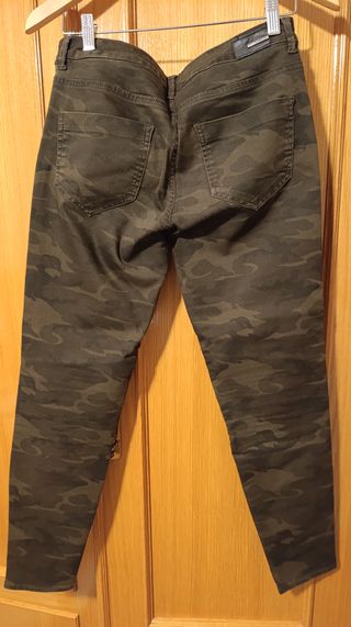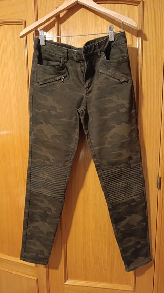 Pantalones con estampado de camuflaje y detalles de cremalleras. - Diseño de camuflaje. - Cremalleras decorativas en los bolsillos delanteros. - Panel con costuras acanaladas en la zona de las rodillas.