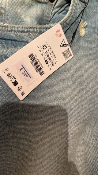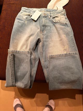 Pantalón vaquero de Zara con un estilo moderno y desgastado. - Diseño con efecto lavado a la piedra. - Aberturas y rotos en los bajos. - Tiro alto.