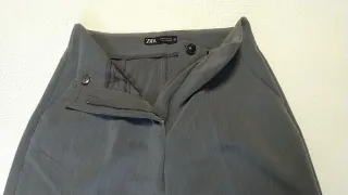 Pantalón de vestir de Zara en color gris. Diseño elegante y moderno. - Cintura con banda elástica negra. - Bolsillo trasero. - Tejido de sarga. Puesto una vez.