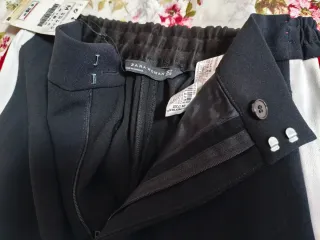 Pantalones de efecto piel de ZARA. - Cintura elástica. - Cierre de botón y cremallera. - Bolsillos laterales.