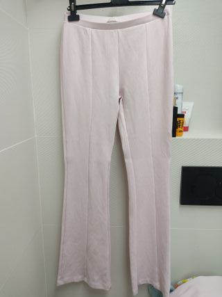 Pantalones de punto de Zara, cómodos y versátiles. - Tejido acanalado. - Cintura elástica con cordón. - Pierna ancha.
