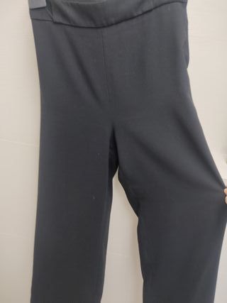 Pantalón negro de campana, talla L, de Zara Woman. Cintura alta, con cremallera lateral invisible. Tejido elegante y corte muy favorecedor que alarga la figura.