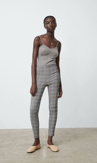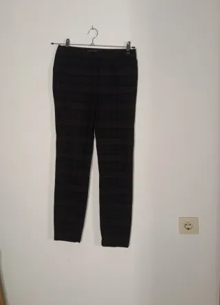 Pantalón de Zara Woman con un diseño de cuadros. - Diseño de cuadros en tonos negro, burdeos, azul y gris - Corte ajustado. Medidas Cintura 36 cm Caderas 48 cm Largo 98 cm Largo entrepierna 76 cm
