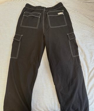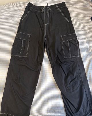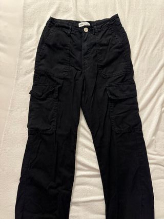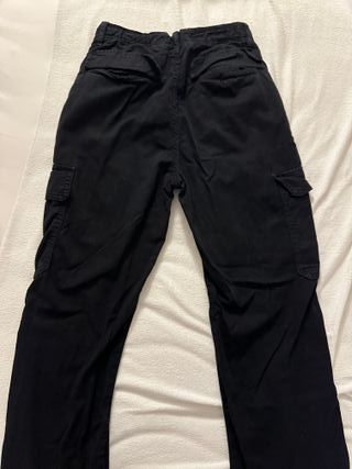 Pantalones cargo de estilo urbano en color negro. - Bolsillos laterales. - Cierre de botón y cremallera. - Cintura con trabillas para cinturón.