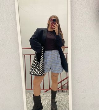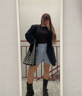 Pantalón jogger de Zara con estampado de cuadros. - Cintura elástica con cordón. - Bolsillos laterales. - Diseño moderno y cómodo.