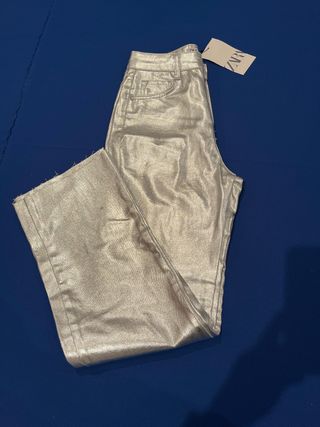 Pantalón Zara plateado pata ancha mujer T34 Nuevos