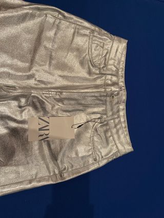 Pantalón de Zara con un llamativo acabado plateado. - Talla EUR 32.