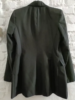 Elegante traje de Zara en un sofisticado tono gris antracita. Perfecto para ocasiones formales o para añadir un toque de distinción a tu vestuario. - Diseño de doble botonadura. - Solapas clásicas. - Bolsillos frontales con solapa.