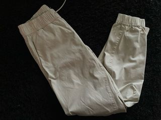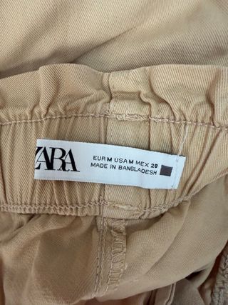 Pantalones cargo de la marca Zara en color beige. Tienen un corte moderno y son muy cómodos. - Cintura elástica con cordón. - Bolsillos laterales. - Puños ajustados.