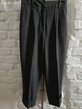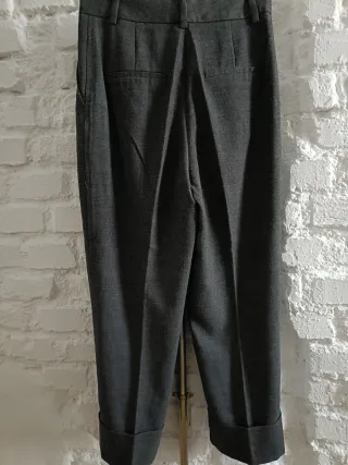 Pantalón de vestir de Zara en color gris antracita. Diseño elegante y moderno. - Corte recto. - Cintura alta. - Pinzas delanteras. - Dobladillo en el bajo.