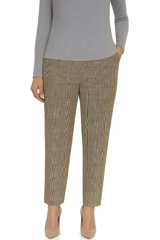 Pantalón de vestir con estampado de cuadros. - Diseño clásico. - Corte recto. - Cintura elástica en la parte de la espalda.