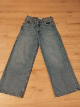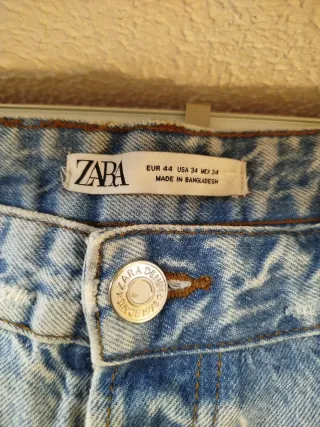Pantalón Denim de Zara con un llamativo acabado plateado y diseño de pata ancha. -talla 34 - Corte recto. - Cintura alta. - Bolsillos delanteros y traseros. - sin estrenar , con etiqueta se recogen en domicilio , no hago envíos