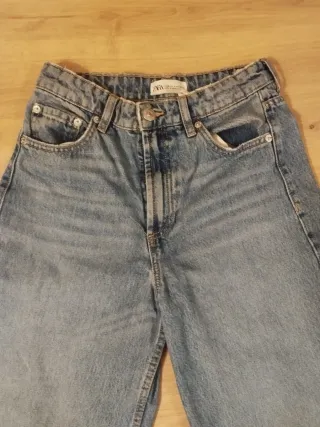 Pantalón vaquero de Zara con un diseño moderno y cómodo. - Corte recto. - Cintura alta. - Acabado desgastado. - Bajo deshilachado.