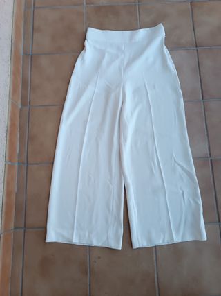 Bonito traje pantalón y Blazers de Zara. Tejido de calidad cómodo y muy agradable al tacto. No se arruga. Es para una talla S ( 36 ). Pantalón de tiro medio con caída y largo 95 cm. Blazers cruzada muy estilosa. Perfecto estado. Nuevo. Precio no negociable