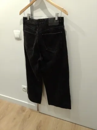 Pantalón culotte de Zara en color negro. Diseño moderno y versátil. - Corte ancho. - Cintura alta. - Bolsillos laterales. Está perfecto salvo por una pequeña mancha que se aprecia en la foto.