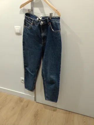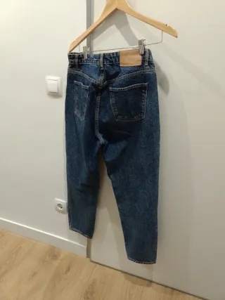 Pantalón vaquero de Zara. - Corte recto. - Tiro alto. - Lavado oscuro.