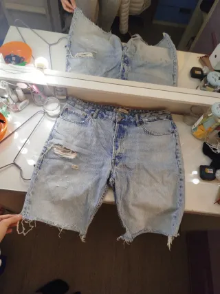 Pantalones vaqueros cortos de Zara con un diseño moderno y desgastado. - Corte recto. - Cintura alta. - Bolsillos delanteros y traseros. - Bajo deshilachado.