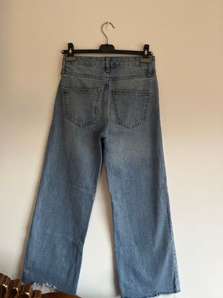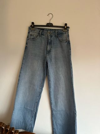 Pantalones vaqueros de Zara en talla 36. - Corte moderno y cómodo. - Lavado claro característico. - Diseño con detalles desgastados.
