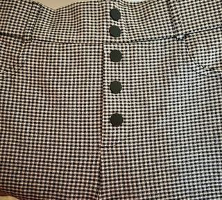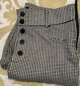 Pantalón de Zara con un diseño de cuadros clásico en blanco y negro. Presenta un cierre de cremallera lateral y detalles de botones en la parte delantera. - Diseño de cuadros. - Cierre de cremallera lateral. - Botones decorativos en la cintura.
