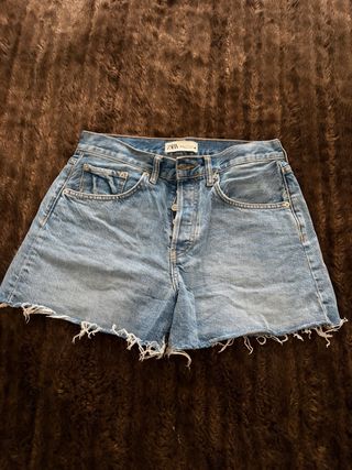 Shorts vaqueros de Zara con un estilo moderno y desenfadado. - Corte desgastado en el bajo. - Cierre de botones. - Bolsillos delanteros y traseros.
