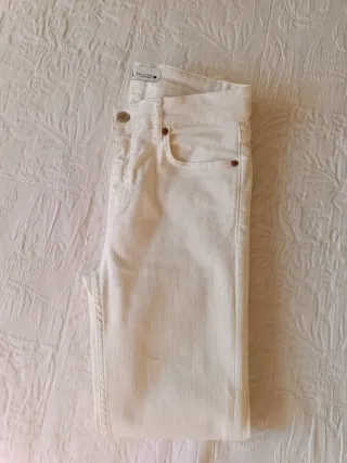 Pantalón vaquero de mujer en color blanco. Un poco elasticos, corte ajustado y tiró medio. - Marca: Zara - Talla: XS / 34 / 6 - Color: Blanco