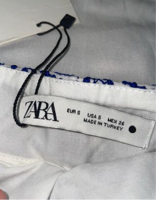 Pantalón corto Zara bordado azul y blanco Talla S