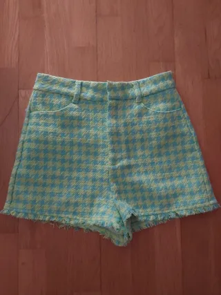 Shorts Zara Houndstooth Verde y Amarillo