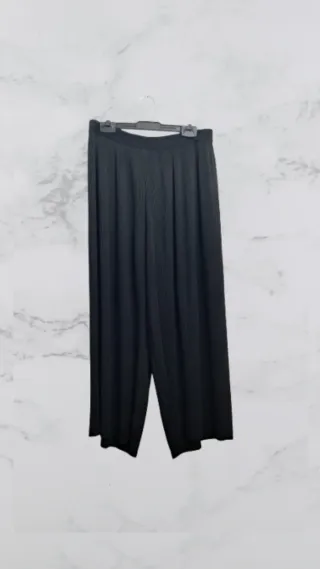 👖 Pantalón negro y ancho de poliester para mujer de Zara 👜 Ideal para look casual o más arreglado 🏷 Talla M (38) 📏 Medidas: 73 cintura | 85 largo 🔎 Detalles: acabado recto, tejido plisado, cintura elástica ✅️ En perfecto estado