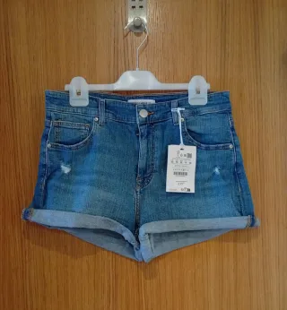 Pantalón corto vaquero de la marca Pull&Bear. - Diseño desgastado. - Dobladillo en los bajos.