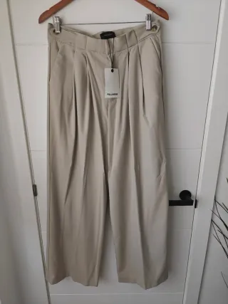 Pantalones de vestir Pull&Bear en color beige. - Diseño con pinzas delanteras. - Cintura alta. - Pierna ancha.