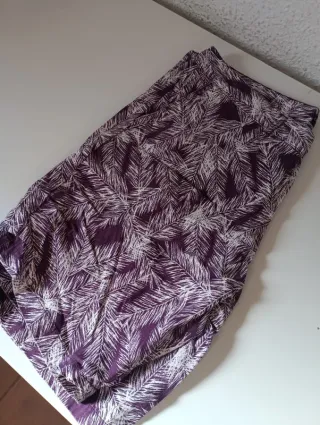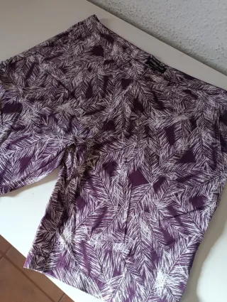 Pantalón corto con un llamativo estampado de hojas en tonos morados y blancos. - Diseño de hoja. - Tejido ligero y cómodo.