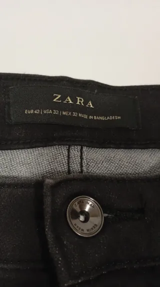 Pantalones vaqueros de hombre de la marca Zara. - Color negro. - Talla L (equivalente a 42-44 europeo o 52-54). - Fabricados en Bangladesh.