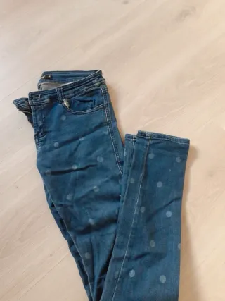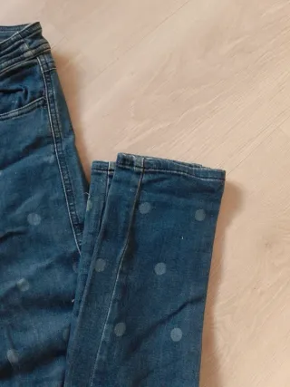 Pantalones vaqueros con un divertido estampado de lunares. - Diseño de tiro alto. - Corte ajustado. - Tejido vaquero resistente.