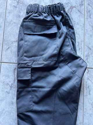 Pantalones de estilo militar con estampado de camuflaje. - Diseño tipo cargo. - Cintura con cordón ajustable. - Puños elásticos en los tobillos. están desgastados de abajo, se aprecia todo en las imágenes