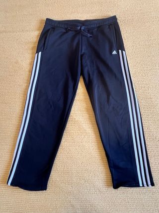 Pantalón deportivo Adidas de color negro. - Diseño con tres rayas laterales. - Cintura elástica con cordón ajustable. - Puños elásticos en los tobillos. Pantalon Adidas talla XL estilo vintage, unisex nuevo apenas sin uso no tiene manchas ni roturas, se entrega lavado listo para usar. Precio de compra +35€ Medidas: Largo del pantalón: 101cm Ancho de la pierna: 26,5cm Tiro de la entrepierna a la cintura: 35cm Cintura (ajustable): 46cm