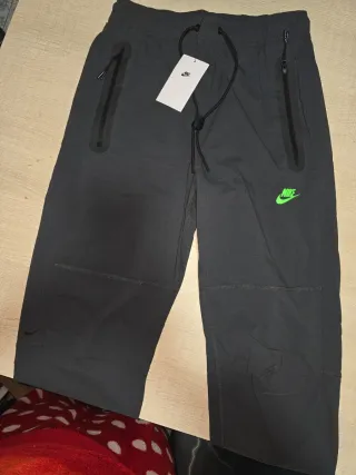 Pantalón deportivo Nike con detalles en verde. - Cremalleras en los bolsillos. - Cordón ajustable en la cintura. - Logo de Nike en la pierna.