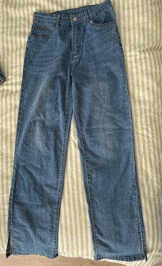 Pantalón vaquero de la marca Charlotte. - Corte recto. - Dos bolsillos traseros. - Etiqueta de la marca en la parte trasera. -Abertura en la parte de abajo.